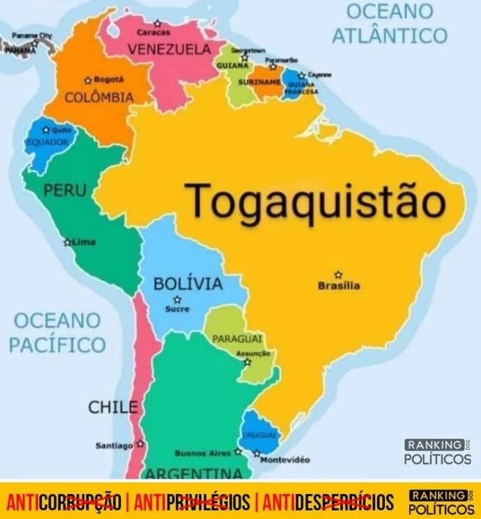 Bloqueio do aplicativo de mensagens Telegram põe o Brasil no grupo que inclui Cuba e China. Em imagem publicada no Instagram, o Ranking dos Políticos