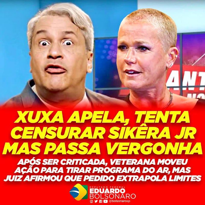 “Após ser criticada por Sikêra Jr, Xuxa entrou com ação judicial tentando tirar do ar seu programa de maneira bastante totalitária.