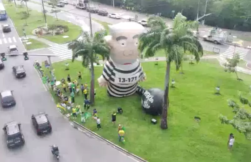 Pixuleco, boneco de Lula vestido de presidiário, marcou presença em Aracaju, neste sábado.