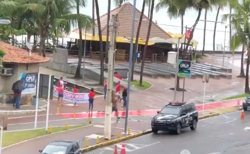 Apenas meia dúzia de militantes petistas saudaram a chegada de Lula ao estrelado Hotel Jatiúca, em Maceió. *TBN