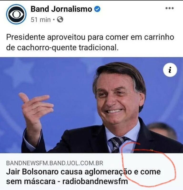 O portal da BandNews FM se tornou alvo de críticas após ter publicado uma matéria com a manchete “Jair Bolsonaro causa aglomeração e come sem máscara”. A repercussão foi tamanha que o portal deletou a publicação.